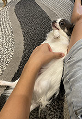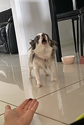 Meet Indigo, a long haired Chihuahua. Unlike her brothers, Indigo isn’t the biggest fan of new people. When I first met Indigo, she wasn’t buying what I was selling. The treats were not good enough for her!