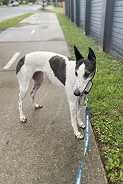 Meet Charlotte, a sweet Greyhound. When I first started walking Charlotte, I quickly learned she’s got her own special style; we’re talking Greyhound Freeze Mode.